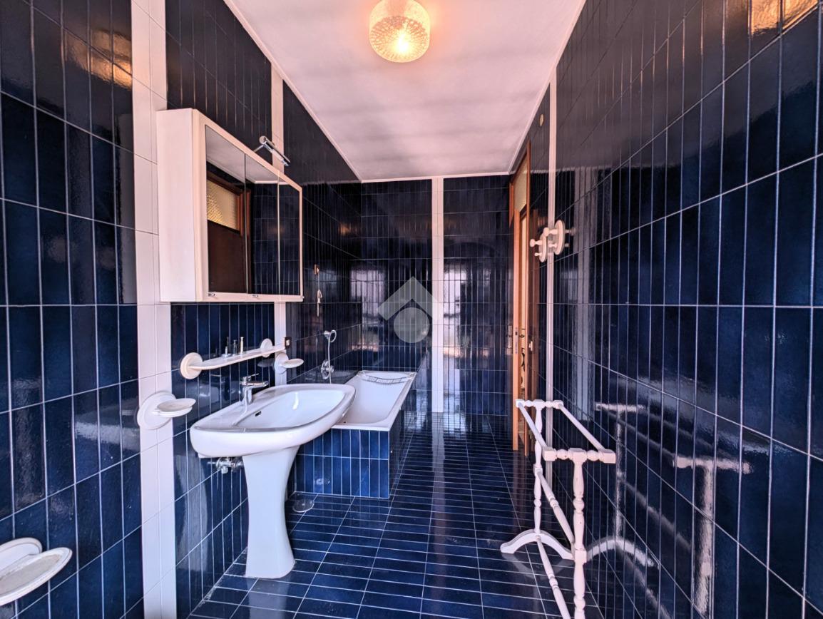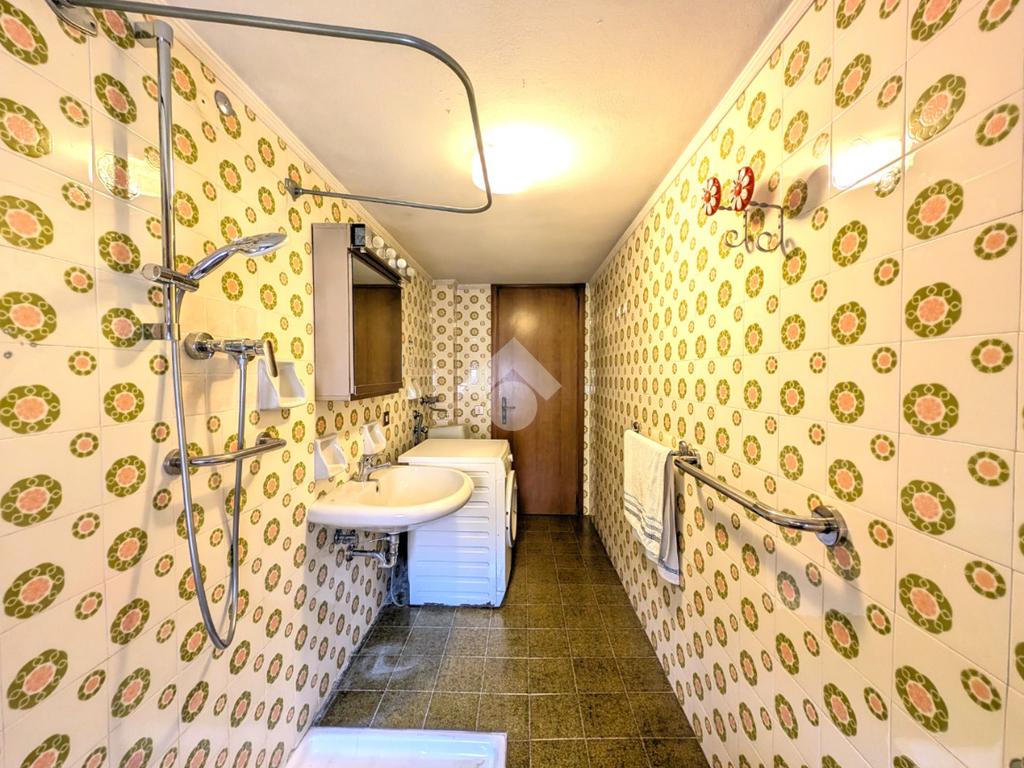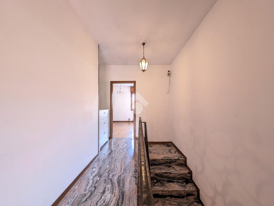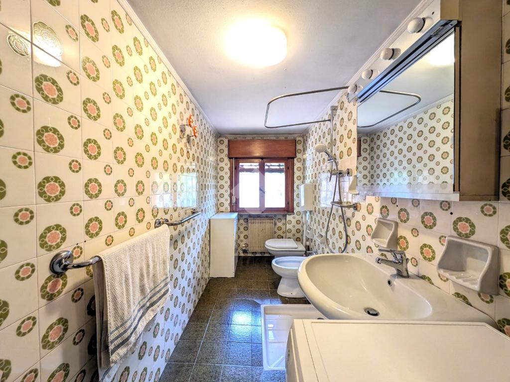 Tramite qualche scalino si accede al bagno a servizio del piano terra, finestrato con doccia, al garage di 18 mq e al vano caldaia.