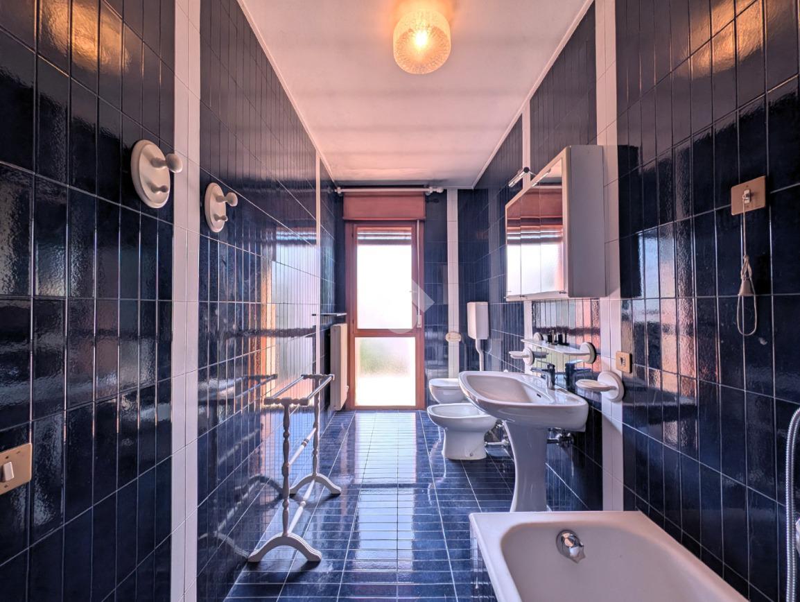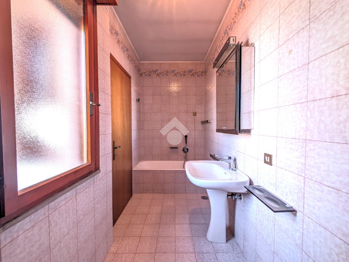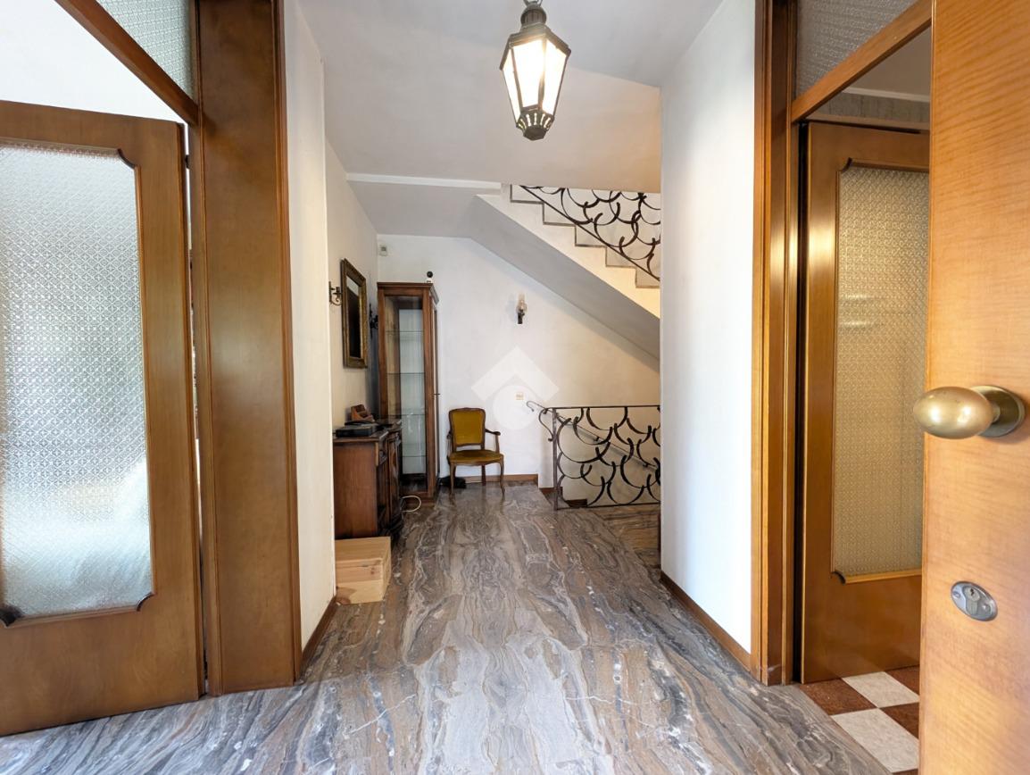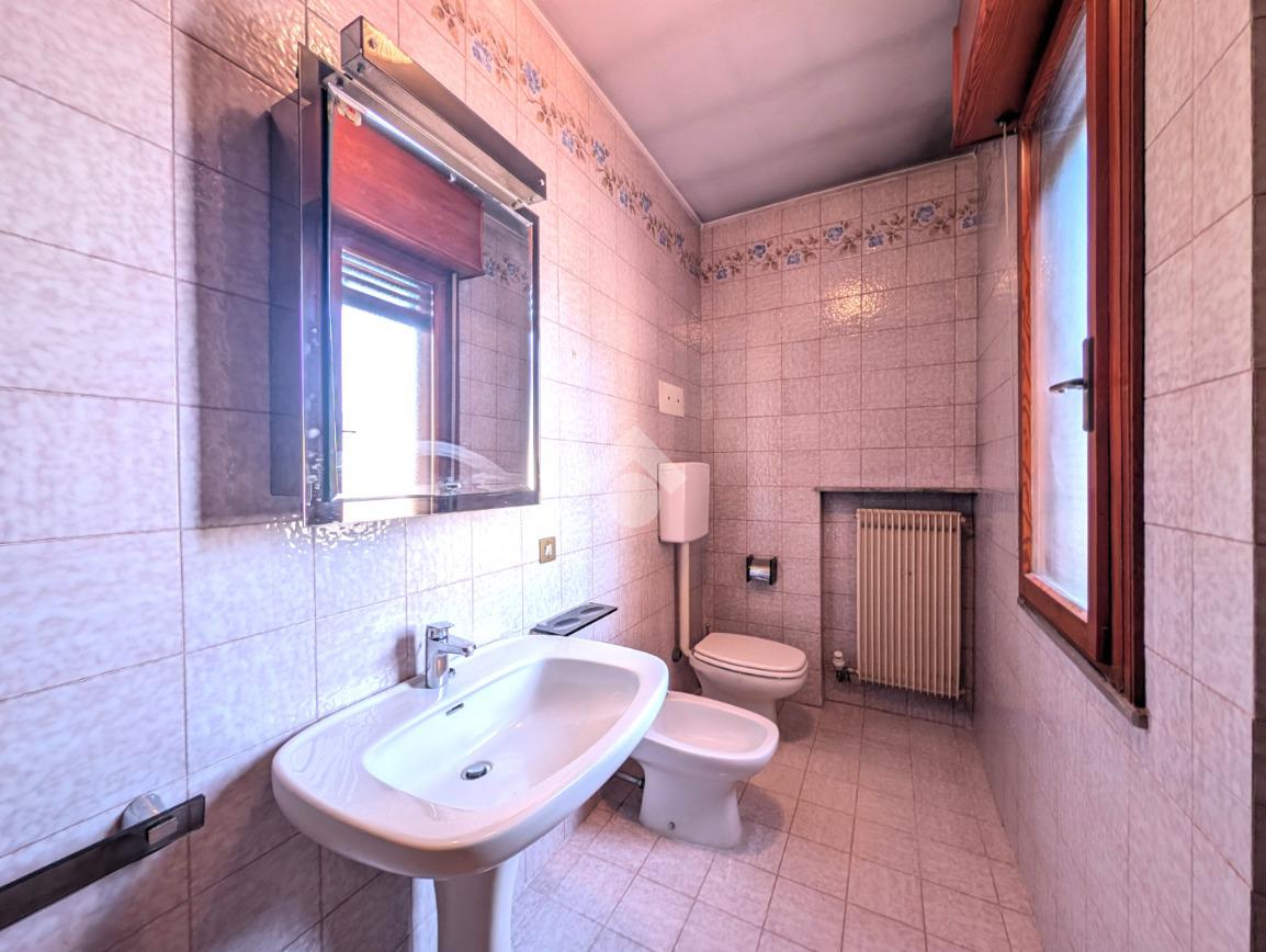 Tramite qualche scalino si accede al bagno a servizio del piano terra, finestrato con doccia, al garage di 18 mq e al vano caldaia.