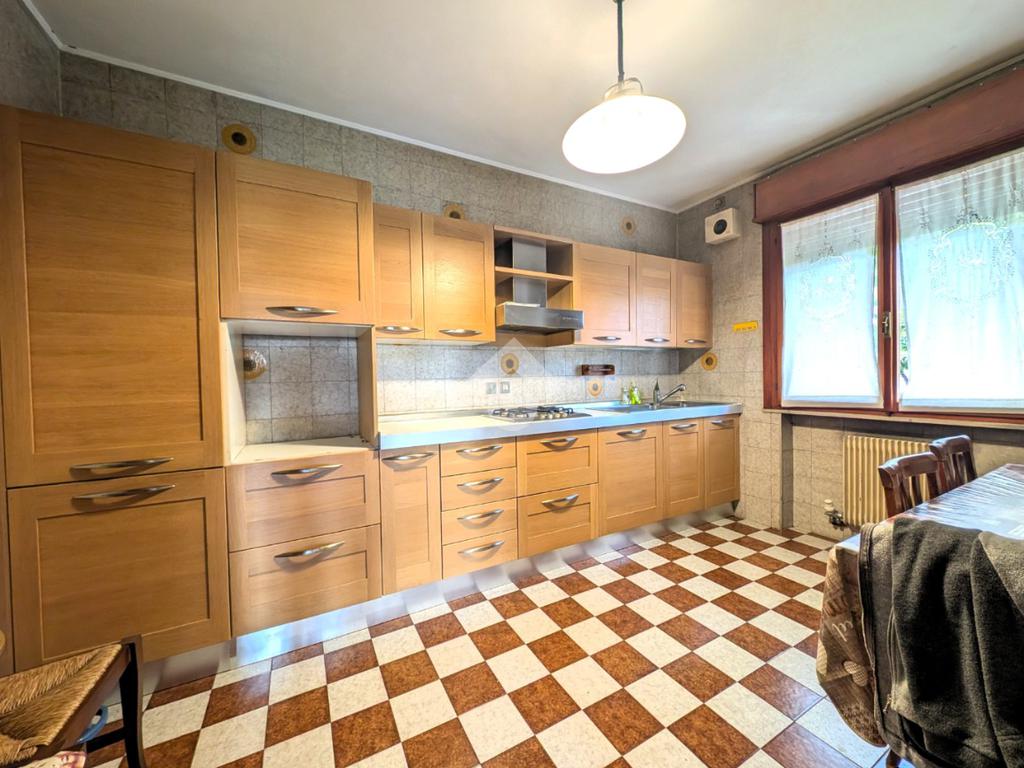 Tramite l'ampio ingresso si accede alla zona giorno composta da soggiorno con accesso al giardino e cucina separata abitabile.