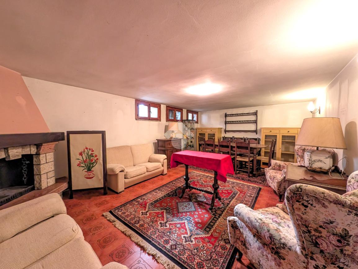 Il piano semi semiinterrato, accessibile tramite scala interna, è composto da una taverna di 27 mq finestrata con caminetto a vista.